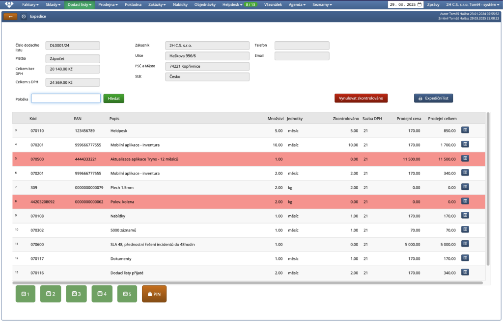 Modul Expedice slouží ke kontrole expedovaného obsahu dodacích listů nebo zakázek. Má pomoci zejména tam, kde je potřeba mít jistotu, že byl ze skladu vyexpedováno opravdu celý obsah dodacího listu nebo zakázky. Pomůže předejít záměnám díky využití jedinečných EAN kódů zboží.