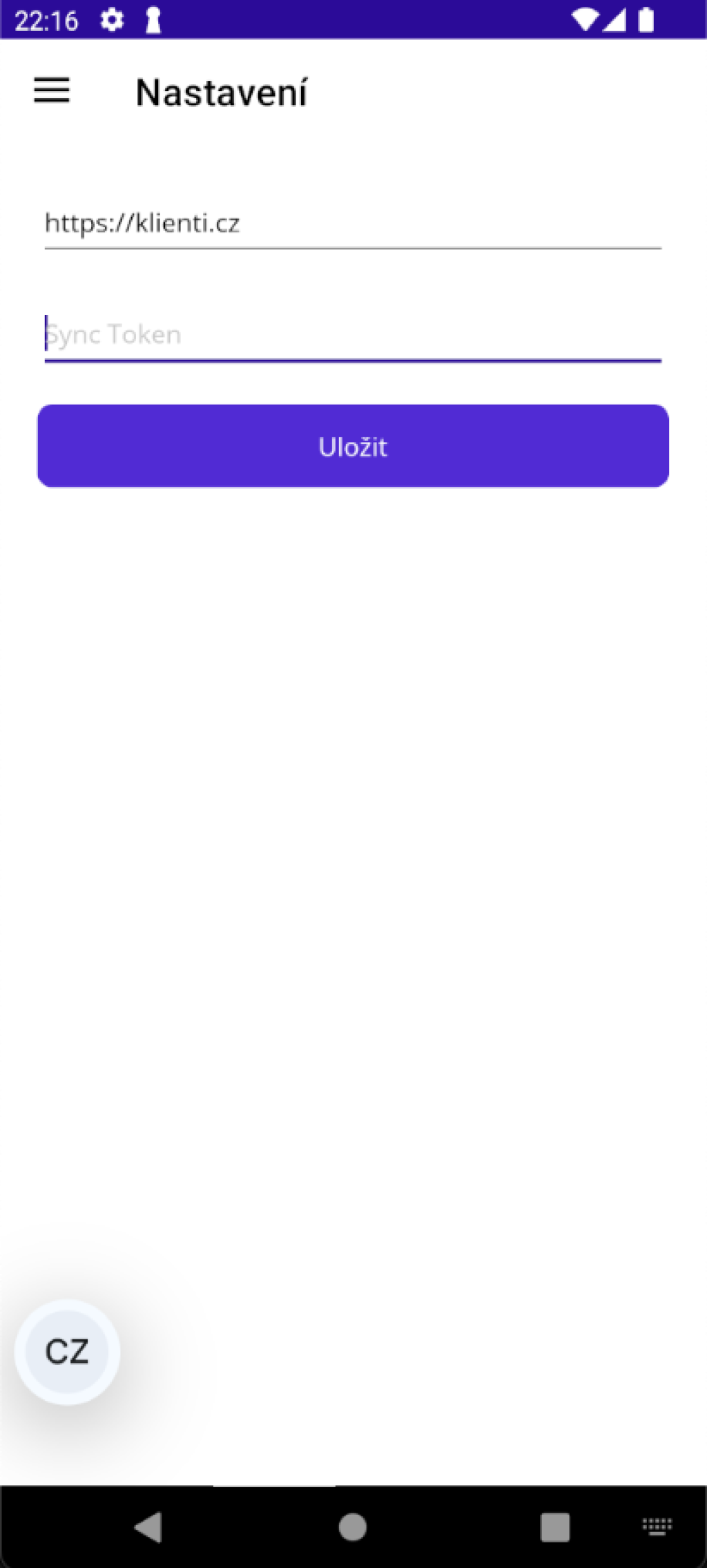 Mobilní aplikace funguje podobně jako modul Expedice v aplikaci Trynx. Nejprve je potřeba mít aplikaci správně nastavenu. Po prvním spuštění otevřete nastavení a zkontrolujte adresu serveru (URL aplikačního serveru). Měla by být "https://klienti.cz" .