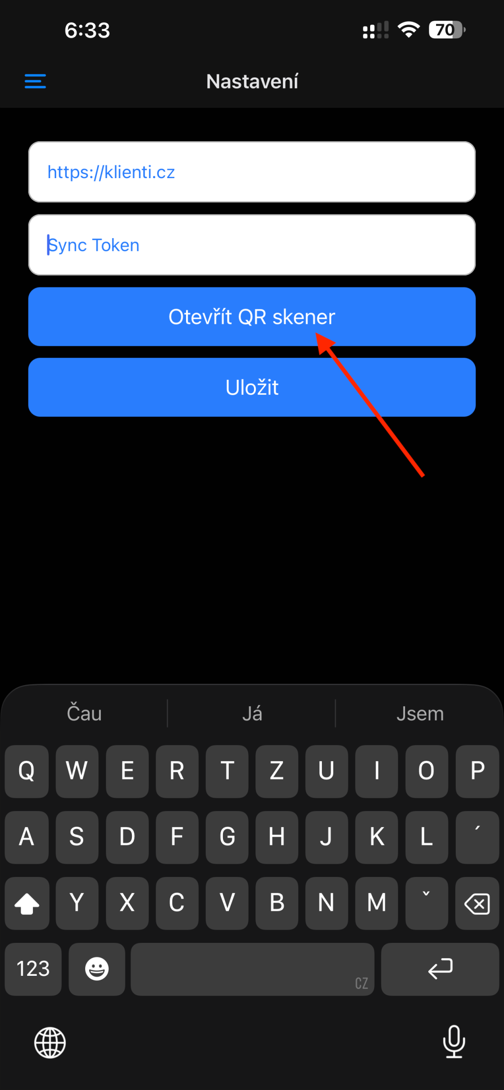 Po naskenování QR kódu klikněte na "Uložit" a poté se na úvodní obrazovce budete moci přihlásit svým emailem a heslem, které používáte pro běžné přihlášení do Trynxu.