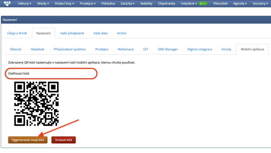 Pokud uvidíte jen QR kód a vedle textu "ověřovací kód" nebude nic uvedeno, znamená to, že ještě nemáte žádný kód vytvořen. Proto klikněte na oranžové tlačítko "vygenerovat nový kód".