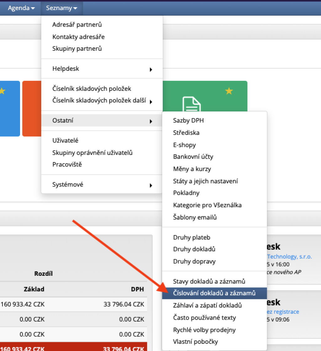 Správnost nastavení číselných řad můžete ověřit v "Seznamy -> ostatní -> číslování dokladů a záznamů"