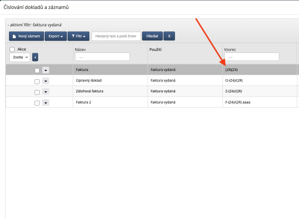 A pak uvidíte číselné řady pro vybraný typ dokladu.